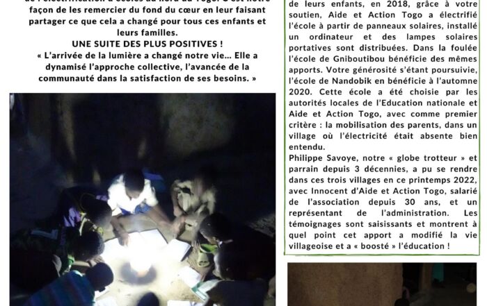 Nous avons décidé de consacrer ce nouveau numéro de la Lettre de l’Isère aux donateurs, marraines et parrains, qui ont soutenu le projet de l’électrification d’écoles au [...]